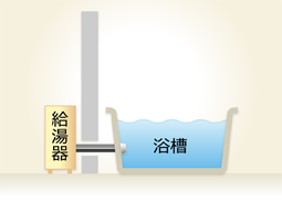 浴室から離れた場所にも設置できる、おふろ沸かしと給湯(シャワー・台所等)が一体になった給湯器です。